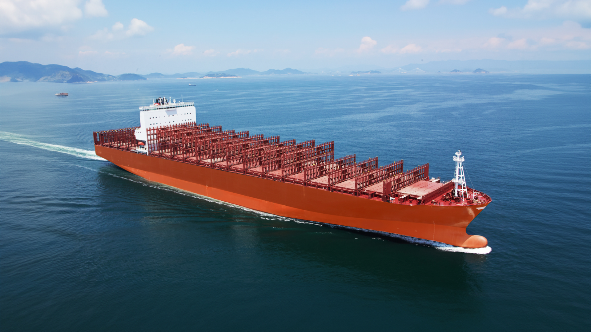 - 透過增加貨櫃船甲板室和綁紮橋的高度來增加載貨量