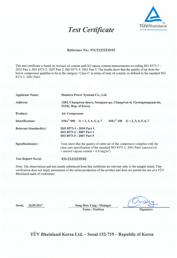 Gas Compressor TR-CU (004 020) 认证